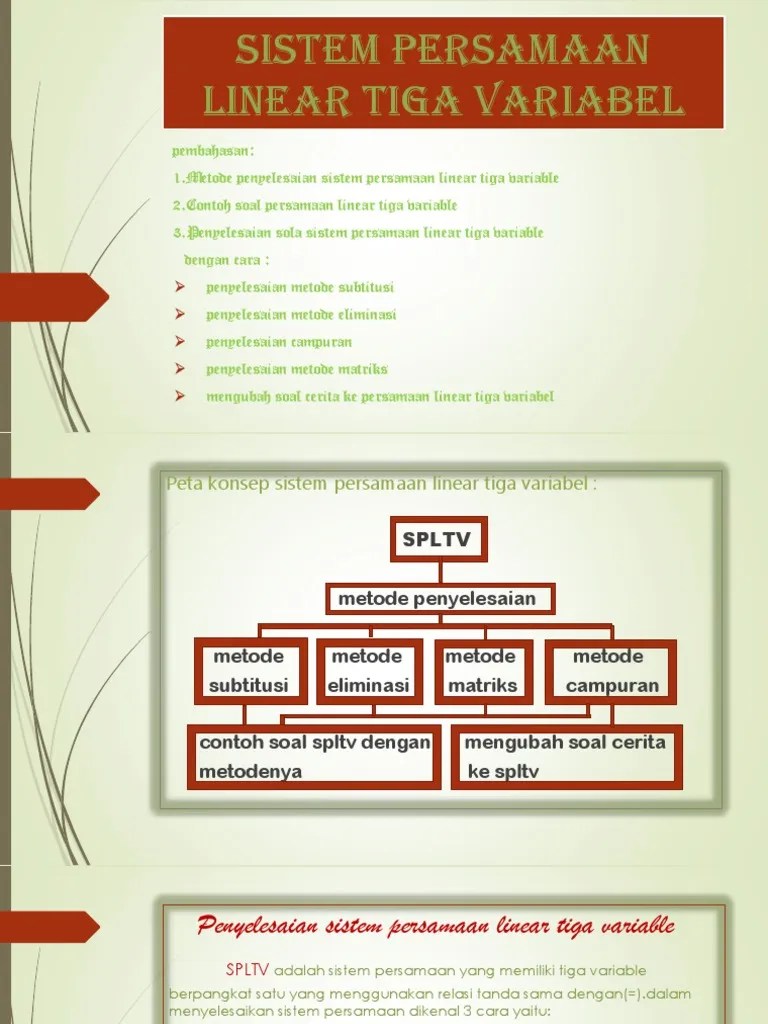 Makalah materi contoh soal sistem persamaan linear tiga variabel diterangkan mulai dari pengertian, jenis, ciri, kaidah, makna, konsep, .