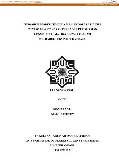 Model pembelajaran course review horay merupakan salah satu pembelajaran kooperatif, yaitu kegiatan mengajar dengan cara pengelompokan siswa ke dalam.