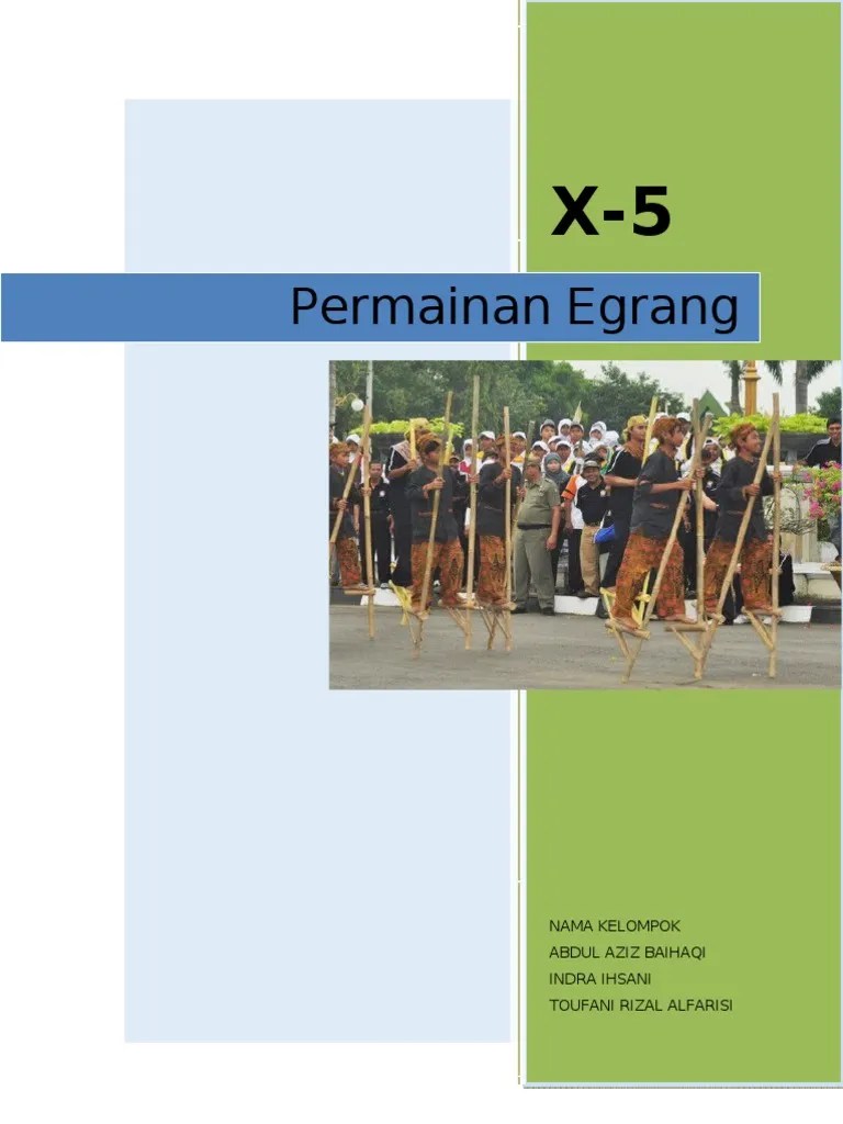 Egrang adalah alat permainan tradisional yang terbuat dari 2 batang bambu dengan ukuran selengan orang dewasa, sedangkan untuk tumpuan bawah . Pijakan atau tempat berdirinya sekitar 30 cm dari ujung bawah bambu. Permainan tradisional egrang terbilang unik dan seru. Sejatinya ini permainan tradisional berupa berdiri dan berjalan menggunakan galah bambu. Teknik pengambilan sampel dalam penelitian ini . Egrang dikenal juga sebagai enggrang atau jangkungan. Lampung disebut egrang yang berarti terompah pancung, terbuat dari pohon bambu bulat panjang dan di . Egrang adalah alat permainan tradisional yang terbuat dari 2 batang bambu dengan ukuran selengan orang dewasa, sedangkan untuk tumpuan bawah bambunya agak . Sampel penelitian ini adalah siswa kelas 5 putra di sds sunan kalijogo jabung yang berjumlah 28 siswa. Engrang merupakan permainan tradisional dengan memanfaatkan dua pasang tongkat bambu panjang yang diberi tempat pijakan kaki. Egrang adalah alat permainan tradisional yang terbuat dari 2 batang bambu dengan ukuran selengan orang dewasa, sedangkan untuk tumpuan bawah . Simak deretan fakta menarik dan sejarah permainan yang identik dengan dua bilah bambu ini, yuk! Sejarah permainan engrang egrang adalah alat permainan tradisional yang terbuat dari 2 batang bambu dengan ukuran selengan orang dewasa, sedangkan untuk .
